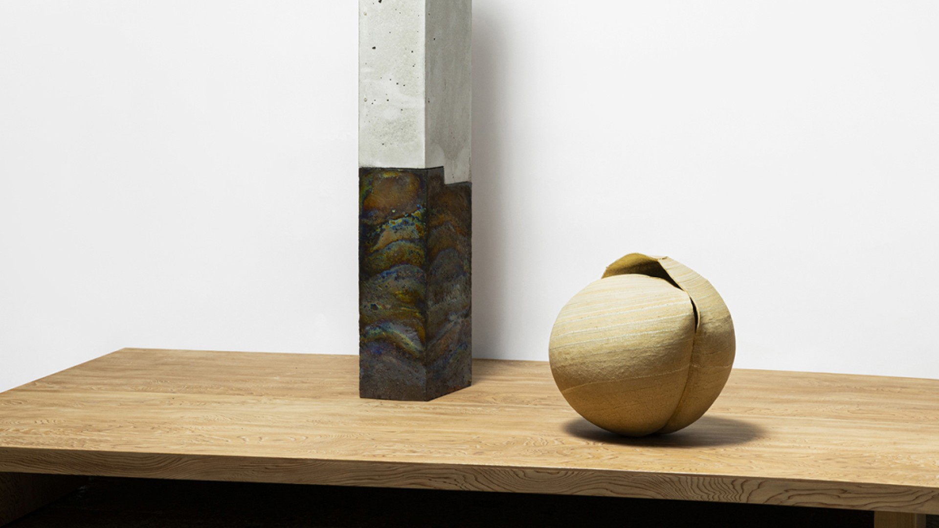 さらに、陶とモルタルという異なる素材を組み合わせることで、偶然と意図、揺らぎと直線が響き合い、作品には静かな緊張感と余白が宿ります。