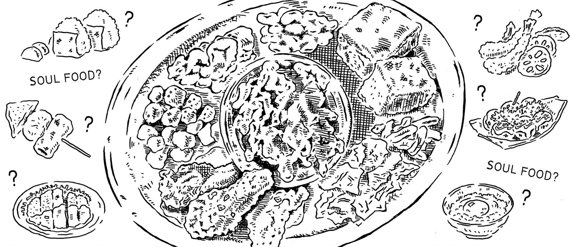 ウィキペディアによると、「ソウルミュージック」のように、1960年代に「ソウル」という言葉がアフリカ系アメリカ人の文化を表現する際によく使われて、そこから「ソウルフード」と言うようになったそうです。また、朝日新聞の現代用語辞典『知恵蔵』には、「もともとソウルフードとは米国南部の黒人の伝統的な料理のことだが、特に2000年以降の日本ではソウル(魂、精神)との意味から派生し、各地特有の郷土料理などを指すことがほとんどとなっている」とあります。どのようにこの使い方が広まったのかはわかりませんが、文化的な背景を考えると、個人的にはまだこの和製英語を受け入れらずにいます。