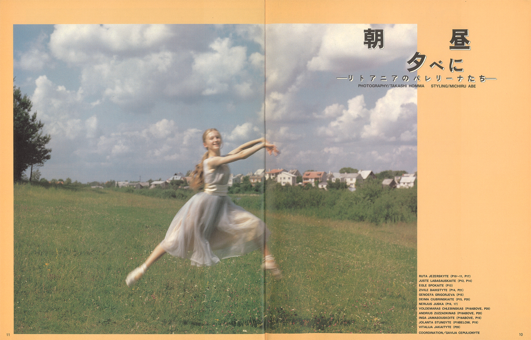 それは仲條さんに聞いてくださいよ(笑)。 当時はたぶん海外に行ったら2号分の撮影をしてくるというルールがあって。ひとつは、バレリーナがいろいろな場所で踊っているというもので、もうひとつは森の中に絵がイラストを貼り付けた風景。行く前に絵コンテがすべて決まっていて、現場では、その通りに撮ってたと思うけど。とはいえその前僕は広告の現場で、もっとガチッと照明も撮り方も商品の見せ方も全部決まっているような撮影もやっていたから、それと比べるとかなりゆるかった。撮り方に関しては、仲條さん何も言わないんですよ、カメラの指定もないし。絵コンテはあったけども、モデルのポーズや背景の写り込み具合、どういったアングルで撮るかとかは決まってなくて、自由に撮らせてもらった印象です。僕的には、ストレスもなかったし、僕に合いそうな撮影を振ってくれていたと思います。