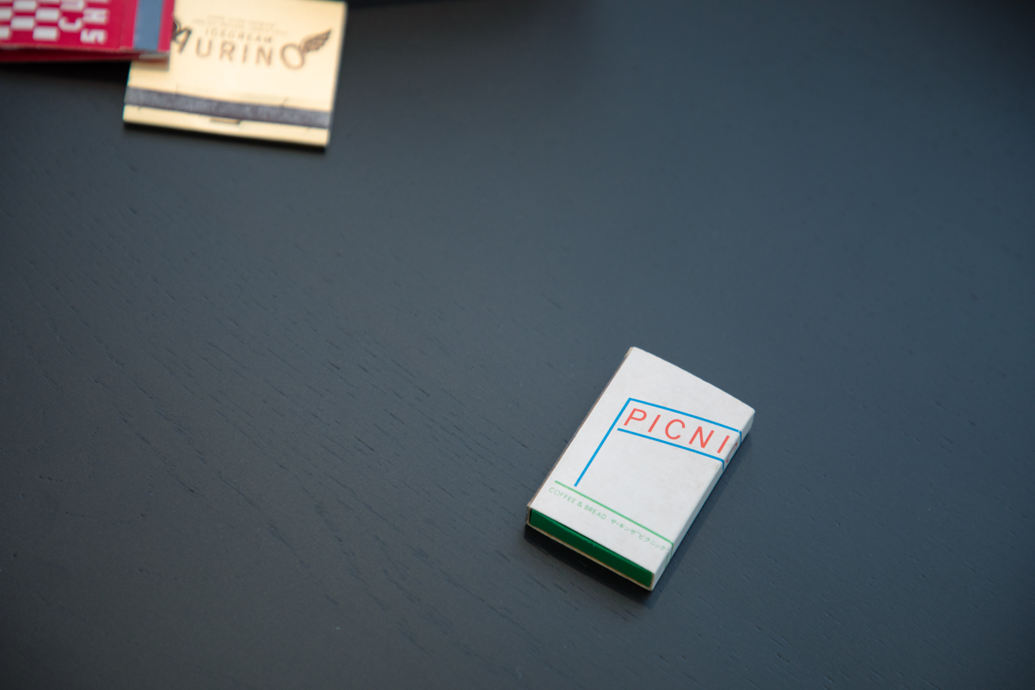あともう一つ。(マッチを取り出し)当時、ザ・ギンザの地下に「PICNIC」という喫茶店があって、予備校の先生が連れていってくれました。内装とかまでは憶えていないんだけど、ザ・ギンザのロゴと雰囲気を合わせつつ、「C」だけが箱の側面に回り込んでいる。当時はデザインに憧れている予備校生ですから、こんなちょっとしたことにすごく感激していた。センチメンタリズムと共に手放せずにいるマッチですね。